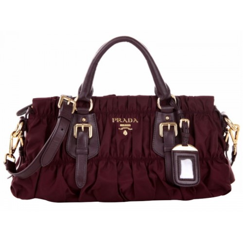 Prada Tessuto Gaufre Nylon-Henkeltasche Burgunderrot