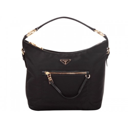 Prada Hobo-Tasche aus Tessuto Nylon mit Lederbesatz, Schwarz
