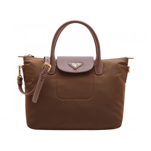 Prada Tessuto Nylon Tote mit Lederbesatz Braun