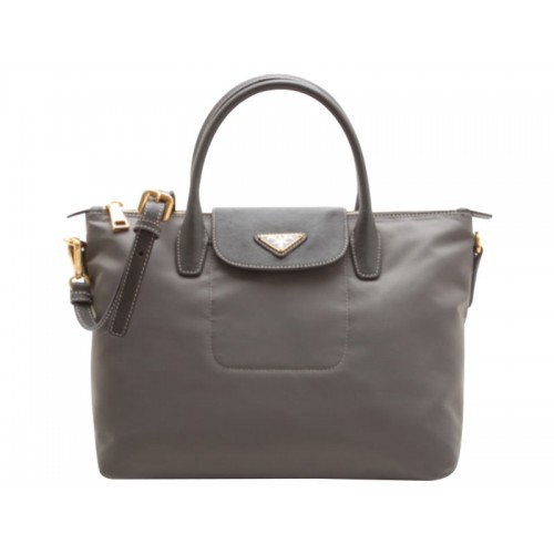 Prada Tessuto Nylon Tote mit Lederbesatz, Grau