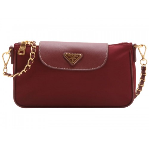 Prada Handgelenktasche aus Tessuto-Nylon mit Saffiano-Leder, Burgunderrot