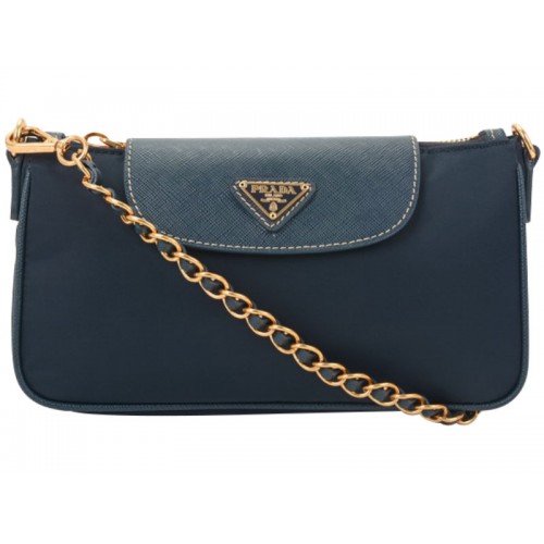 Prada Handgelenktasche aus Tessuto-Nylon mit Saffiano-Leder, Dunkelblau