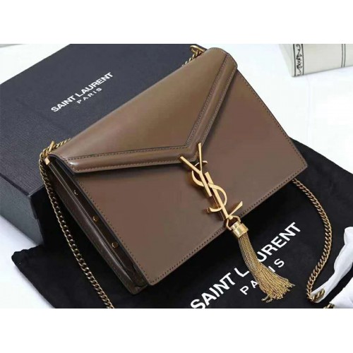 Saint Laurent Cassandra Monogram Clasp Bag Kalbsleder Braun