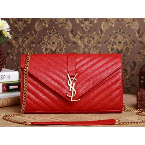 YSL Medium Monogram Satchel, Rot, genarbtes, gestepptes Leder