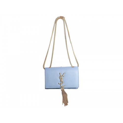 Yves Saint Laurent Mini Monogram Tasche aus Originalleder, Hellblau