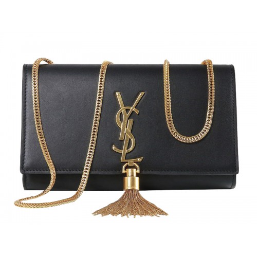 KLASSISCHE UMHÄNGETASCHE SAINT LAURENT MIT INEINANDERGREIFENDER METALL-YSL-SIGNATUR UND KETTEN-METALLQUASTE.