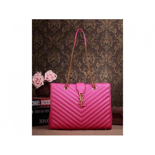 Yves Saint Laurent Classic Monogram Shopping Bag in Lipstick Fuchsia Grain de Poudre strukturiertem, gestepptem Leder