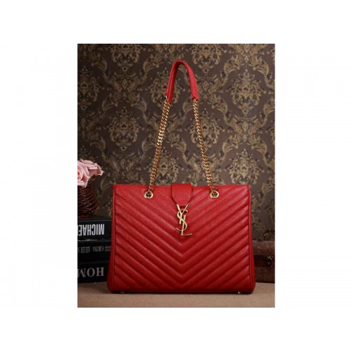 Yves Saint Laurent Classic Monogram Shopping Bag in Lipstick Red Grain de Poudre Textured Matelasse Leather