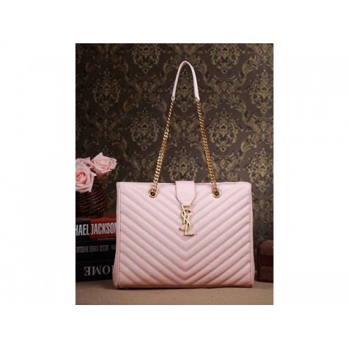 Yves Saint Laurent Classic Monogram Einkaufstasche aus rosafarbenem Grain de Poudre-strukturiertem Matelasse-Leder